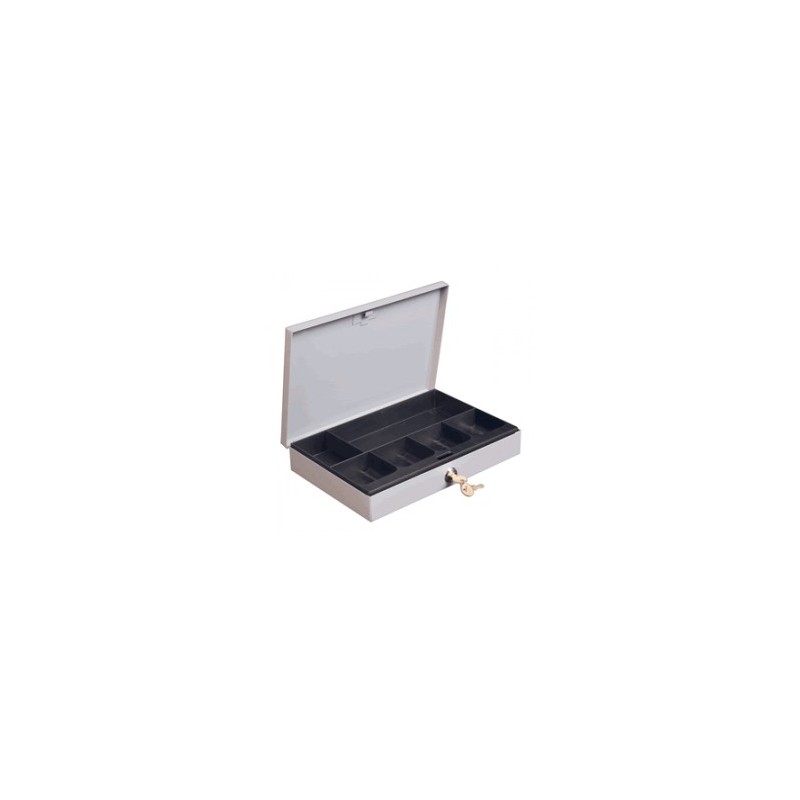 5 X 29.5 X 20 CM.ACERO DE ALTO CALIBRE.CERRADURA CON SEGURO.2 LLAVES INCLUIDAS.CHAROLA REMOVIBLE CON 6 ESPACIOSPARA BILLETES Y MONEDAS.ACABADO HORNEADO COLOR GRIS.