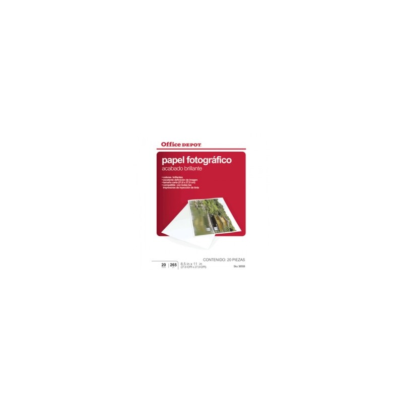 PAPEL FOTOGRÁFICO OFFICE DEPOT.8.5 X 11""".TAMAÑO CARTA.PAQUETE CON 20 HOJAS.BLANCURA 120.170 GR.LA MEJOR OPCIÓN PARA IMPRESIONES DEINYECCIÓN DE TINTA.